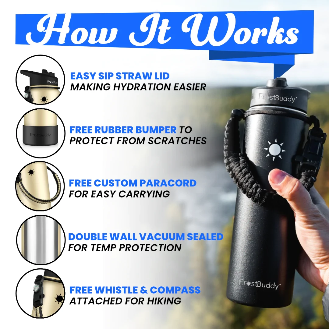 A custom paracord is included along with a free bumper buddy so this is the only purchase you need to make for your water bottle. Add in the straw lid and it’s a home run. Don’t ever worry about looking for the right water bottle again. We have it here!
