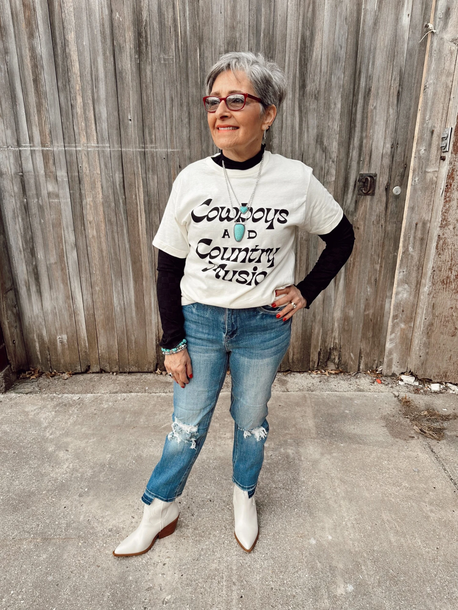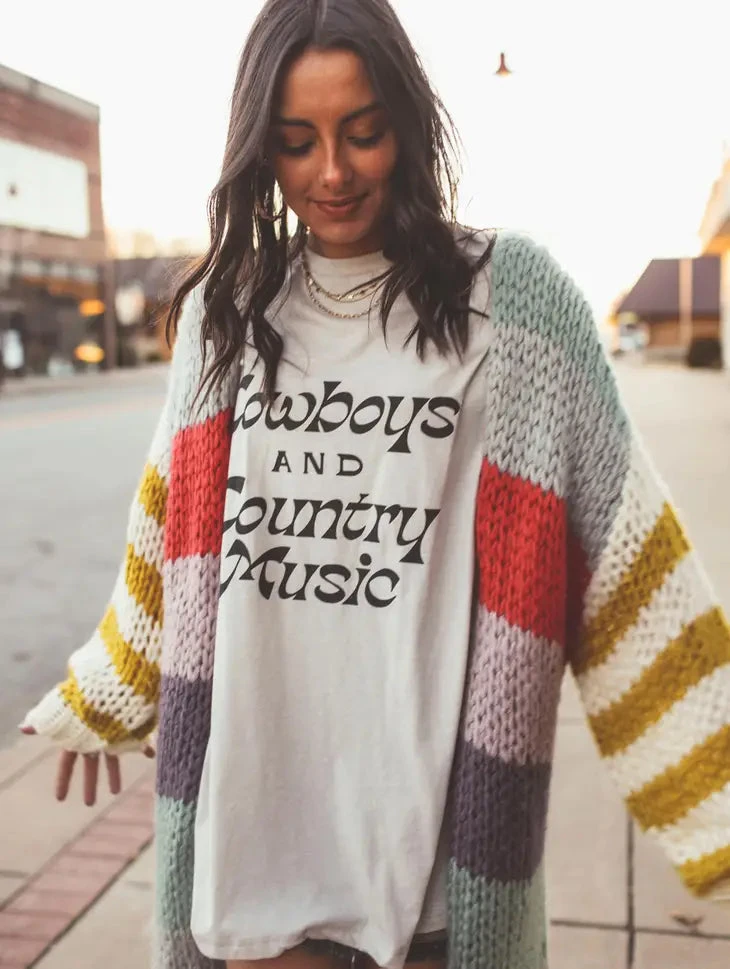 The neutral tones are perfect for any look and make this tee easy to dress up or down. Pair it with black denim and your fav cowboy boots!
