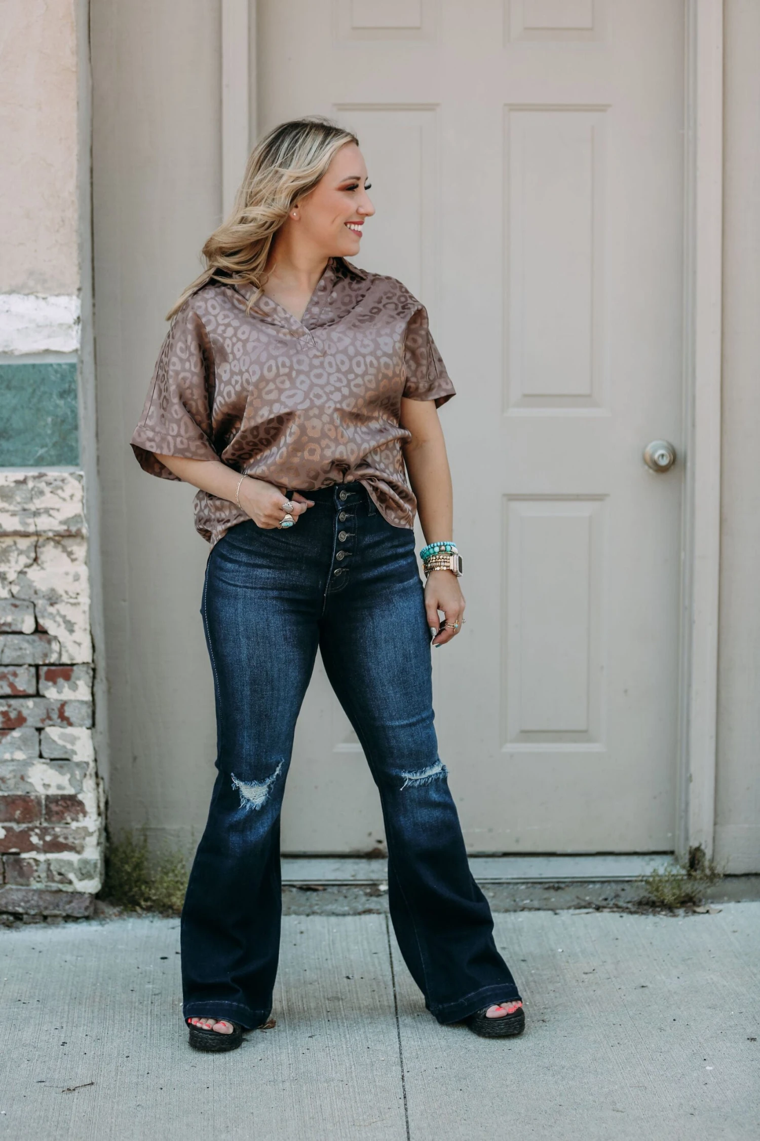 High Rise Button Down Flare