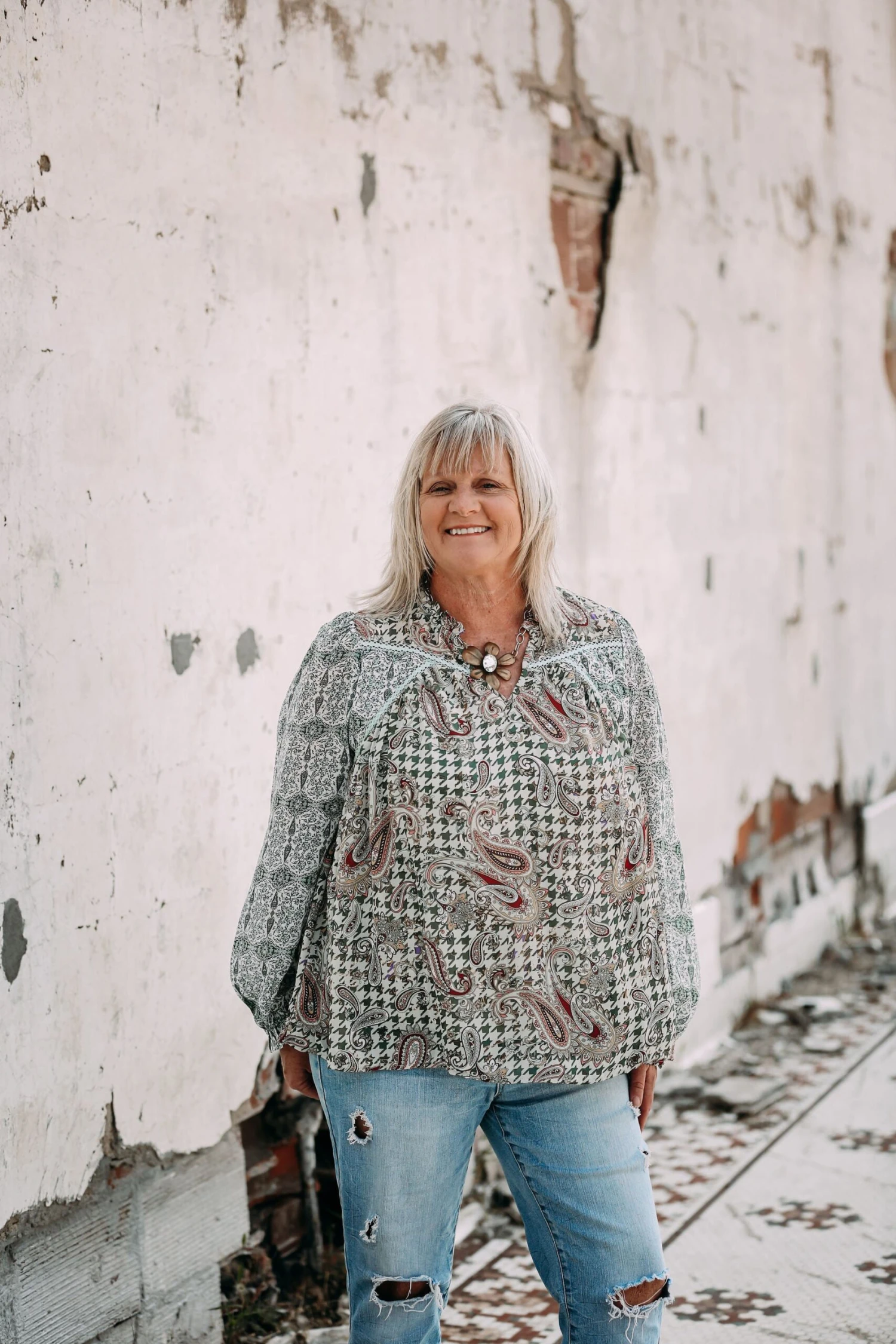 This top is great paired with pants or denim.