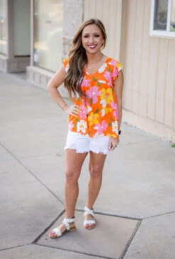 High rise distressed white shorts