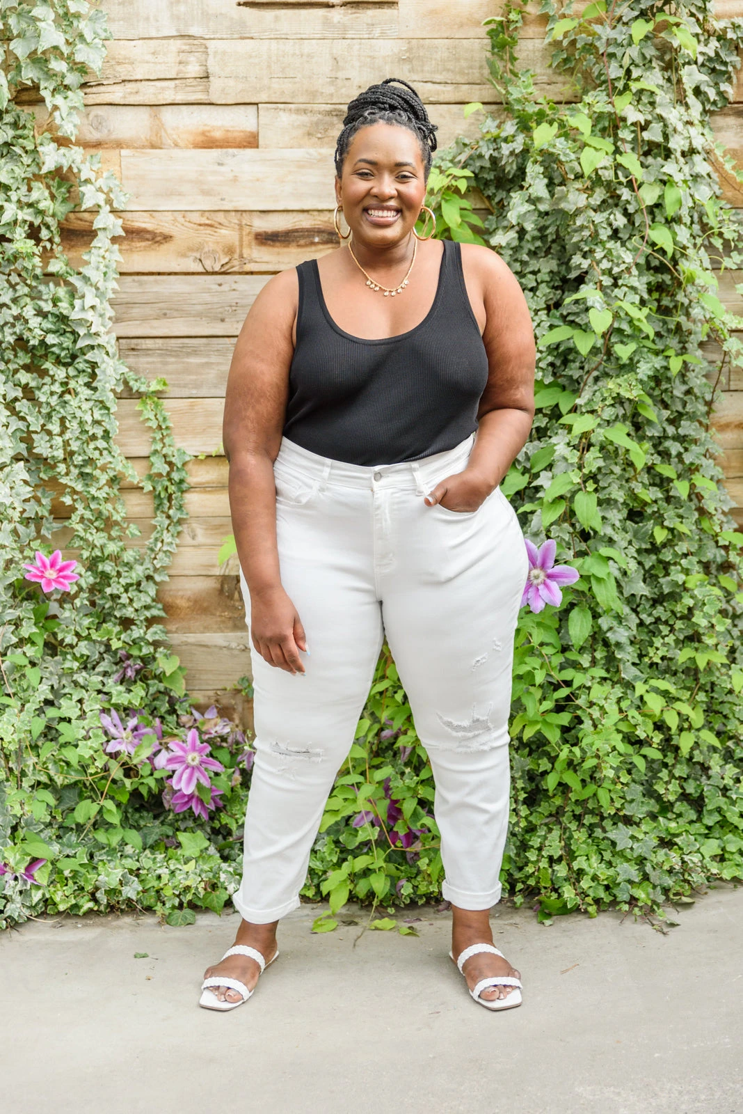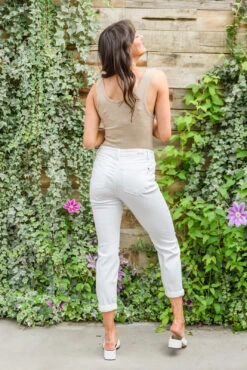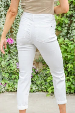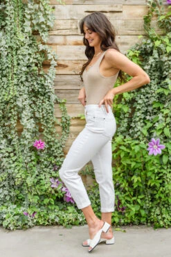 Be voted best dressed when you style your outfit with the Mid-Rise Boyfriend Destroyed White Jeans! A stretchy white denim shapes a mid-rise waistline, five pocket cut, straight leg, and slight knee distressing. We are pairing these summer staples with everything this season!