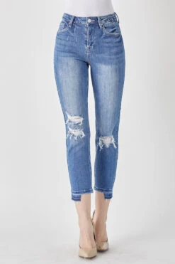 The perfect denim with some cute distressing and a fun ankle distressing super stretchy and so comfy!