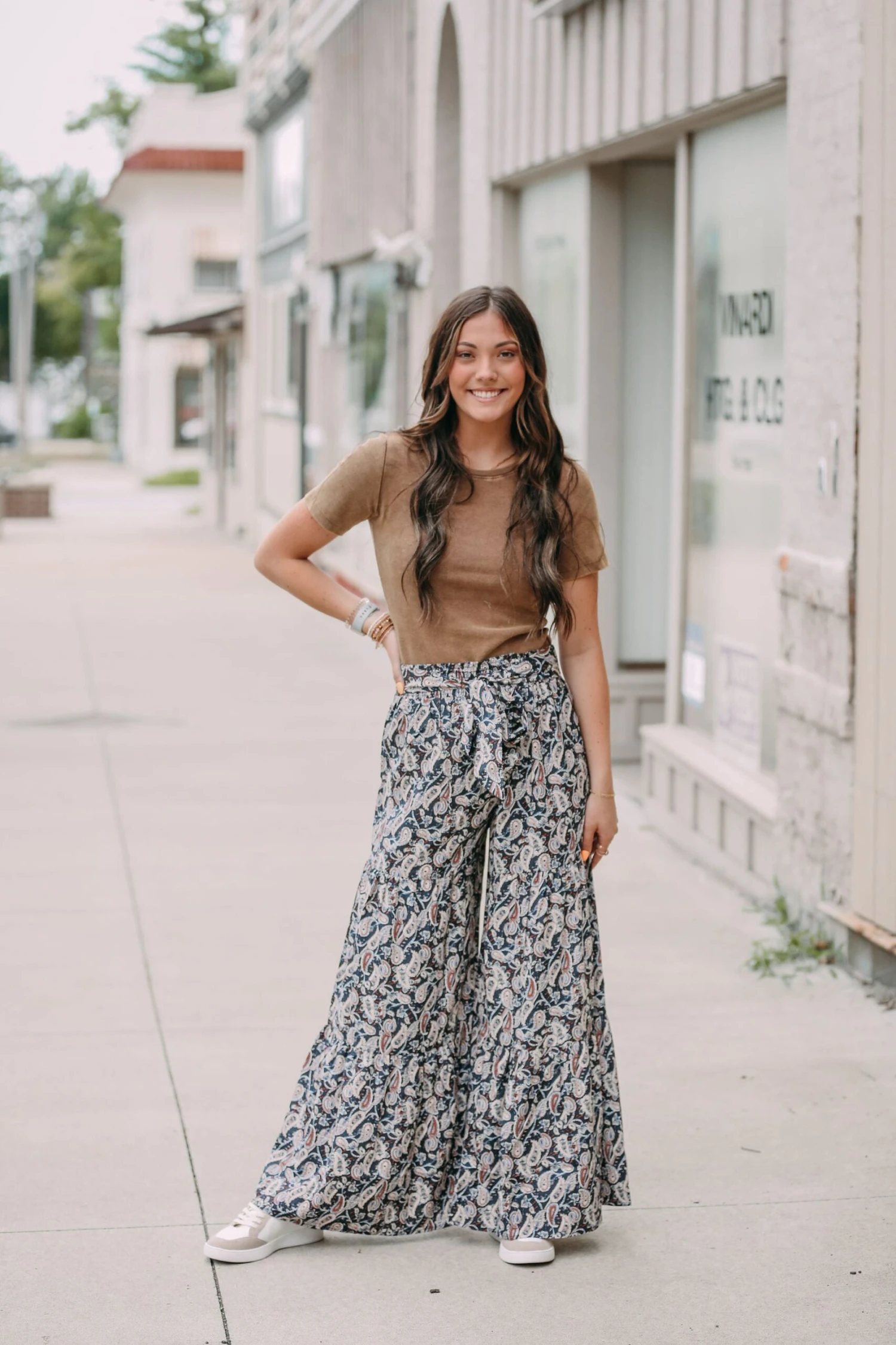 Pasiley Print Wide Leg pants with a tiered design protected with a smocked waist and Tie.