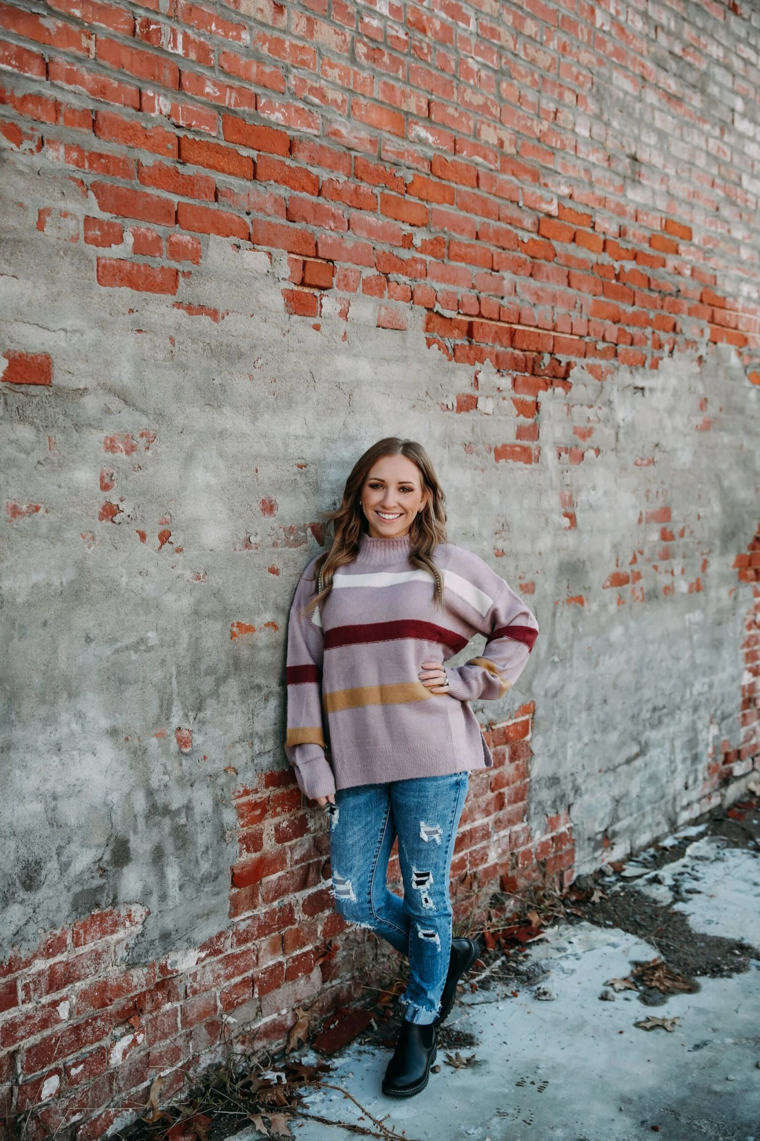 The most darling multi color striped plum sweater.