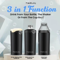 The Big Buddy is your go-to for your favorite big cans! Keep all your 20oz plastic bottles cold with the Big Buddy. Or pour your drinks in and shake up a cocktail. The world’s first 20oz bottle cooler + cocktail shaker.