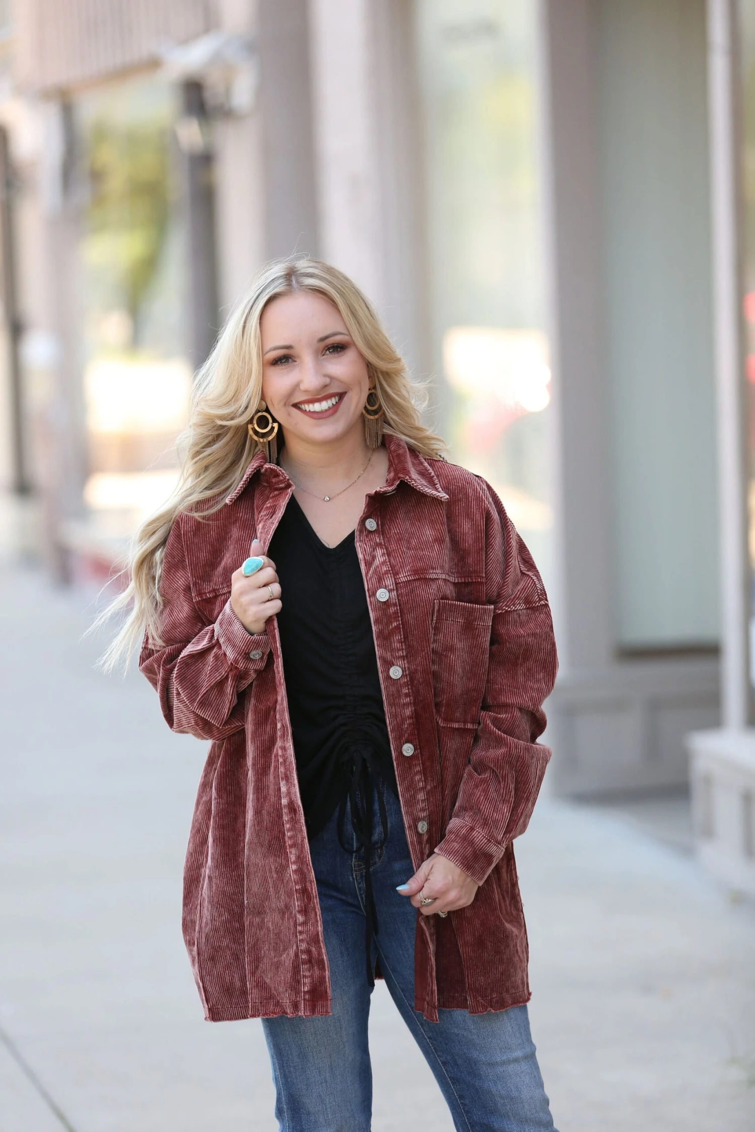 OVERSIZED PREMIUM VINTAGE WASHED CORDUROY BUTTON FRONT SHACKET – FRONT BUTTON CLOSURE