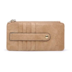 Slim cardholder wallet Zipper change pouch Gold tone hardware ID holder Dimensions: 7.5” L x 4” H
