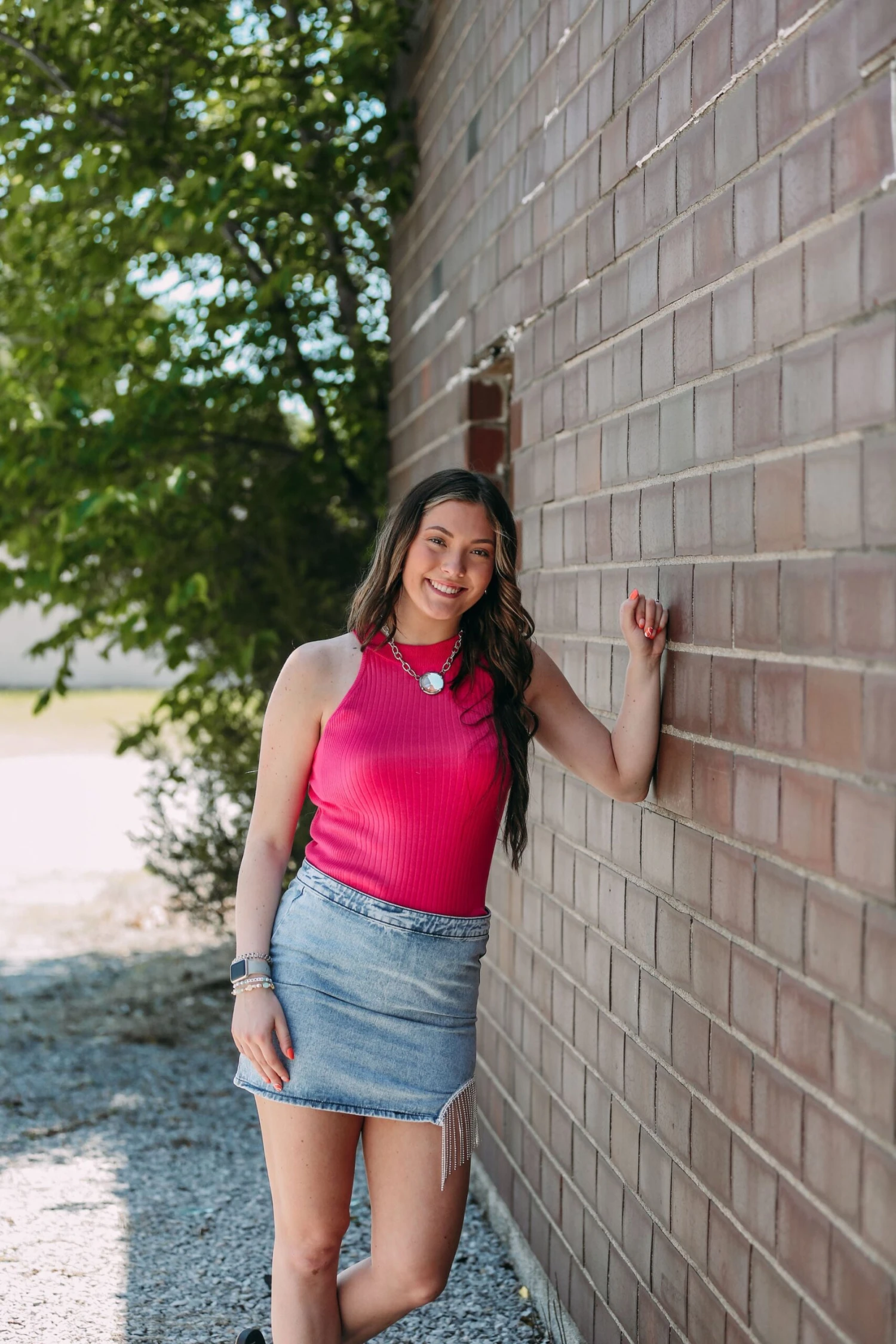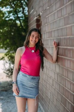 The cutest denim for skirt for a birthday party or any fun occasion! Cute rhinestone tassel on the side of the skirt. Pair with any fun graphic tee!