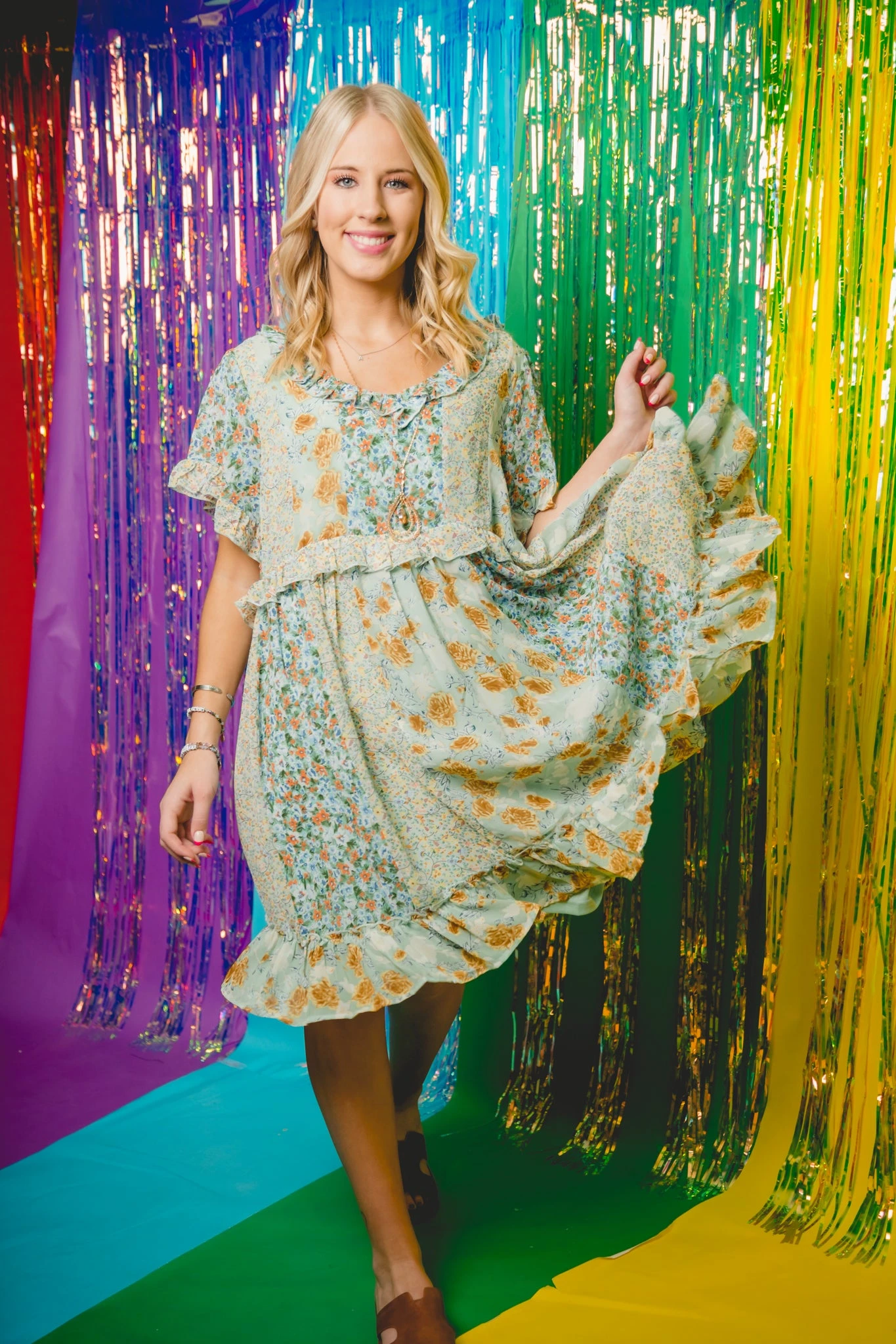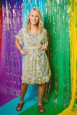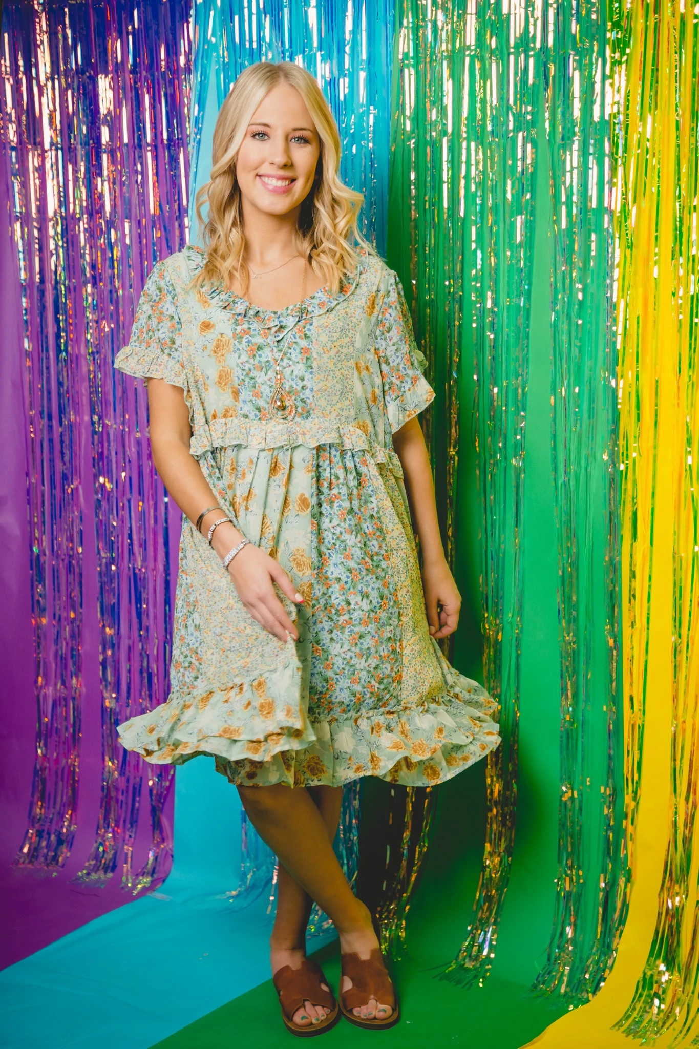 Chiffon Floral mixed short sleeve dress with a full lining.