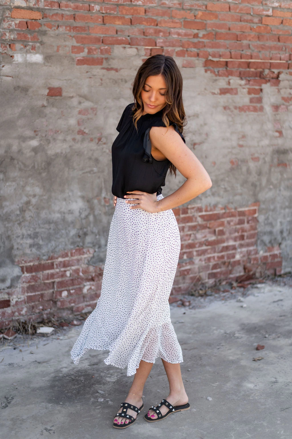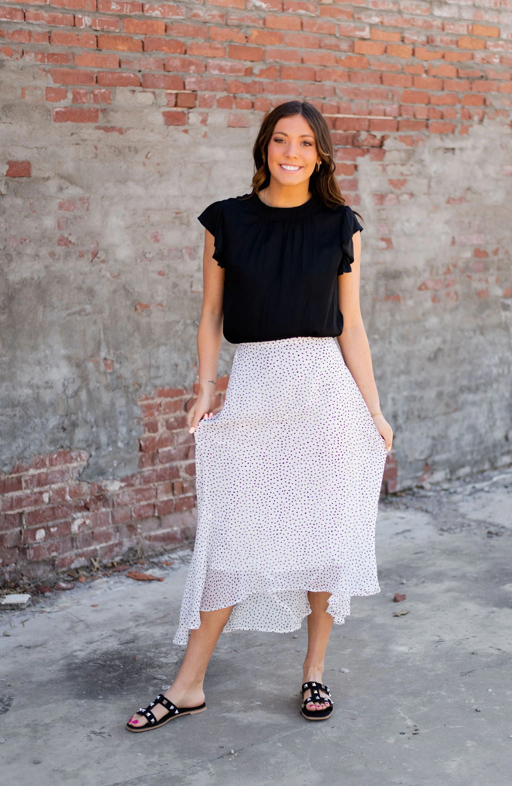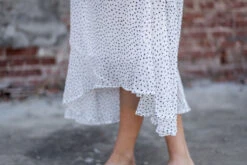 POLKA DOT PRINT HANKY HEM ELASTIC WAIST MAXI SKIRT